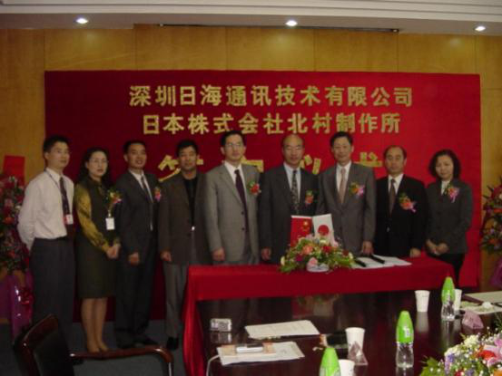 2004年4月13日,公司与日本株式会社北村制作所就户外一体化机房的设计、生产、销售和服务在凯发k8国际智能签订了合作协议,共同合资组建深圳北村凯发k8国际机房技术有限公司,并举行了隆重的签字仪式。公司周展宏董事长、王文生总裁、杨飞董事、机房事业部负责人孟庆光和日本北村制作所北村泰作董事长、永井正幸常务董事等出席了签字仪式。